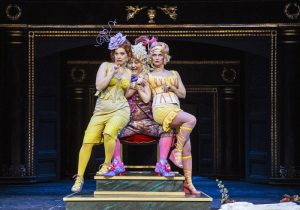 Rossini omarbeider en god del av det opprinnelige eventyret om Askepott. I stedet for den onde stemoren, skriver han inn seg selv som en trumpifisert stefar, grisk og med blind selvtillit. En som nyter å være ved kongens hoff med mat og vin med det han tror er edelsteinene sine, to vakre døtre. Merkelig at assosiasjonene til den nye amerikanske presidenten slo så raskt til akkurat her men slike typer har vi jo kanskje sett siden tidenes morgen?