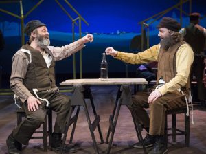 Og her finners musikere. Ekte musikere, med spilleglede, innflettet og vandrende omkring i Anatevka. Videoveggen bak er profesjonelt og virkningsfullt brukt og Nora Furuholmen sin scenografi underbygger stemningen i oppsetningen på en vakker måte. Sterkt ensemblespill er gjennomgangstonen. Ingerborg S. Raustøl, Iren Reppen og Espen Bråten Kristoffersen nevnes spesielt, da de bidrar til å skape mangfold i den grå hverdagen. Det er også noen magiske øyeblikk i denne forstillingen. Øyeblikk som fester seg. Sabbat-scenen er et typisk eksempel. Åpningsscenen likeså. Når byen brenner gjør det vondt.